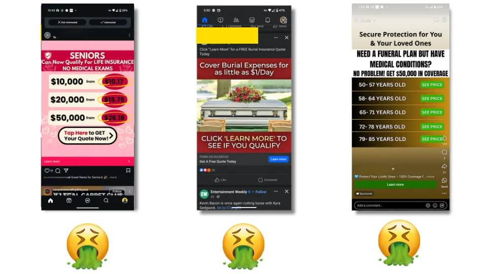 We analyzed countless ads that made us shake our heads. If you're creating ads like these, stop whatever you're doing and call me IMMEDIATELY! Honestly those ads are embarrassing! People don't get excited to click on ads about dying, and we don't blame them. Buying final expense insurance should be a positive experience because it means protecting loved ones. Effective ads need good creatives that resonate with people and have a clear message about what you're selling. This is half the battle! At ATM Leads Ka-ching!, we’ve got you covered. Our secret sauce includes creating ads that make people want to buy insurance!